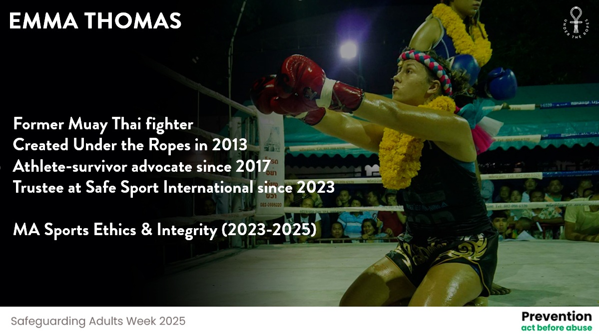 Emma Thomas is a sports ethicist specialising in safeguarding in Muay Thai, and a trustee board member at Safe Sport International.